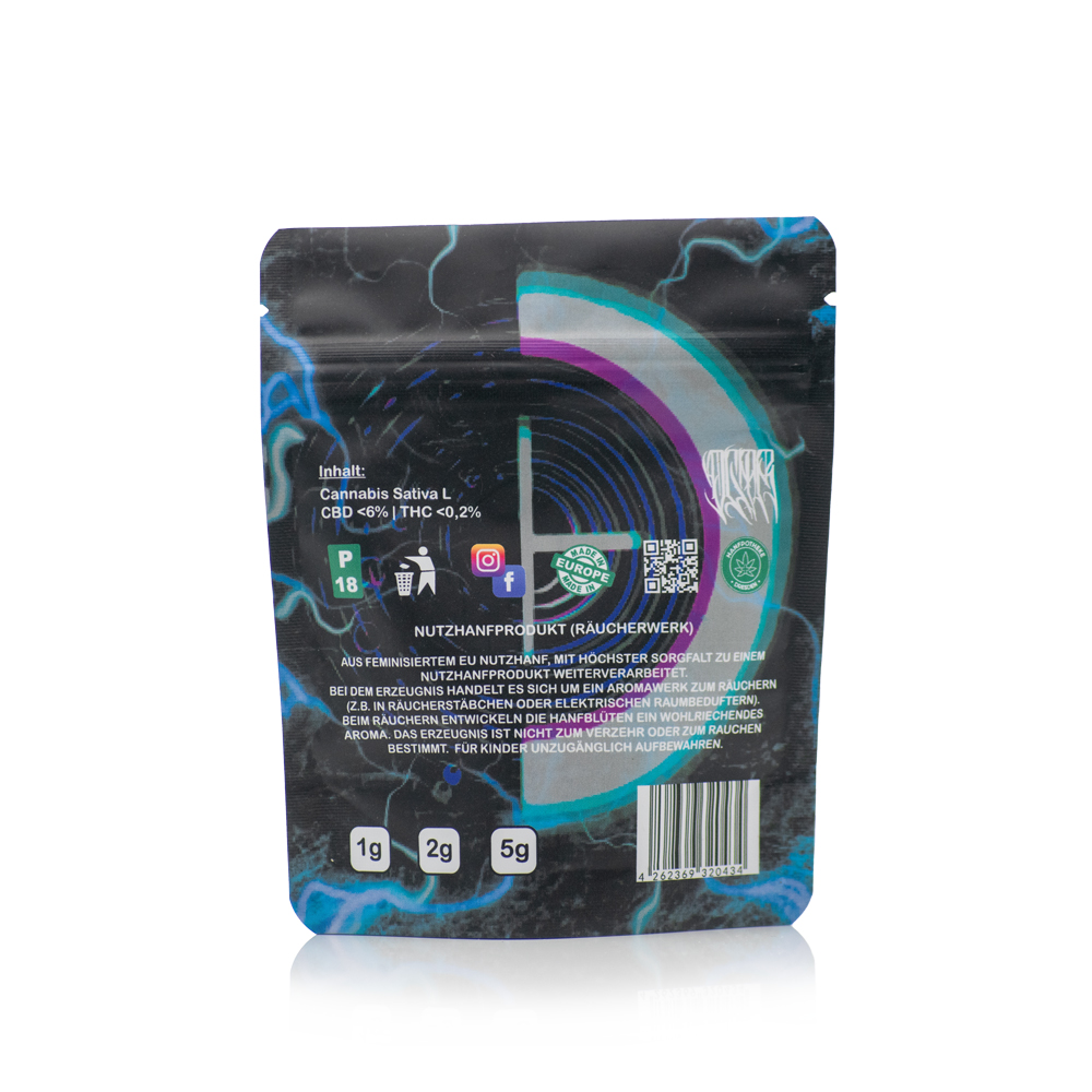 Alaskan Thunder Fuck, eine sehr außergewöhnliche Sorte, welche wir in Zusammenarbeit mit dem Fuck the Village-Festival ausgesucht haben. Diese Sorte wurde aus EU zertifizierten Nutzhanfsorten gewonnen und weist einen CBN Gehalt von über 40% auf. Der THC-Wert dieser EU-zertifizierten Nutzhanfsorte liegt bei unter 0,2%. Made in Europe Indoor-Anbau Für Kinder unzugänglich aufbewahren. Verkauf ab 18! Aus CBD Rohstoff Hanf Aromaprodukt Missbrauch untersagt